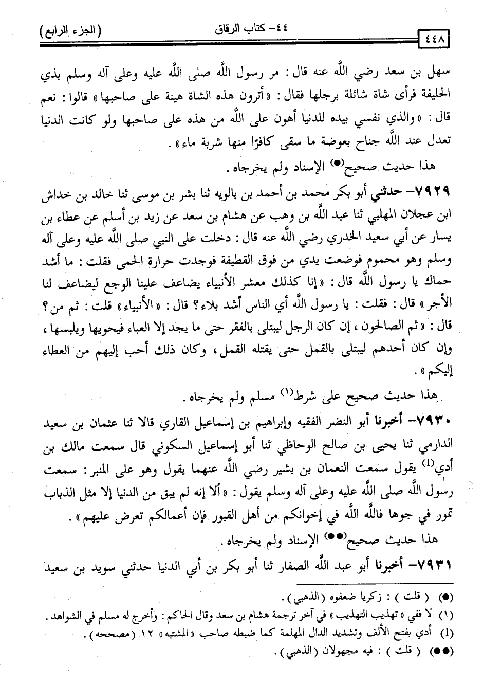 كتاب المستدرك على الصحيحين للحاكم (ت مقبل) (اسم الجزء: 4)