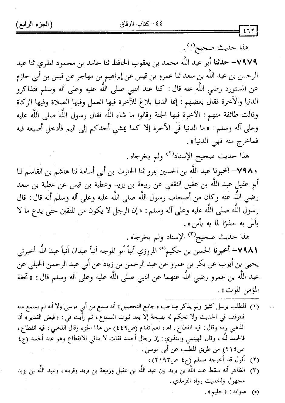 كتاب المستدرك على الصحيحين للحاكم (ت مقبل) (اسم الجزء: 4)