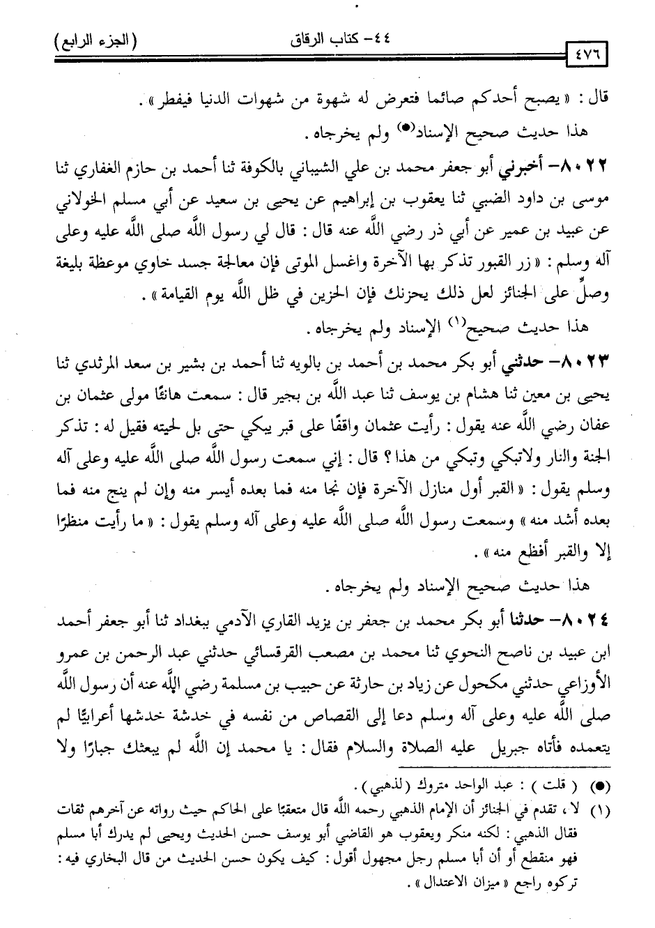 كتاب المستدرك على الصحيحين للحاكم (ت مقبل) (اسم الجزء: 4)