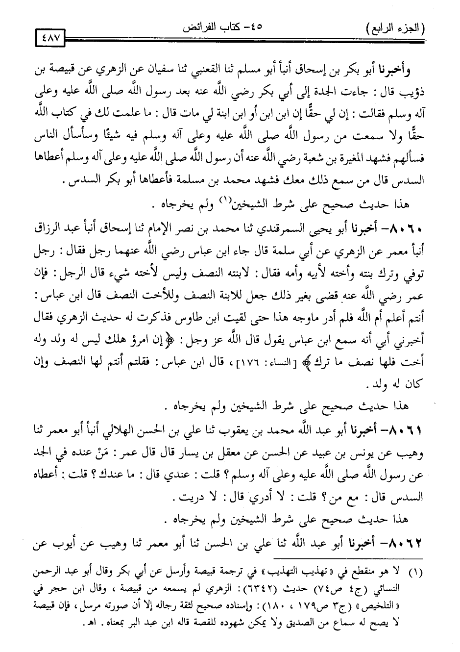 كتاب المستدرك على الصحيحين للحاكم (ت مقبل) (اسم الجزء: 4)