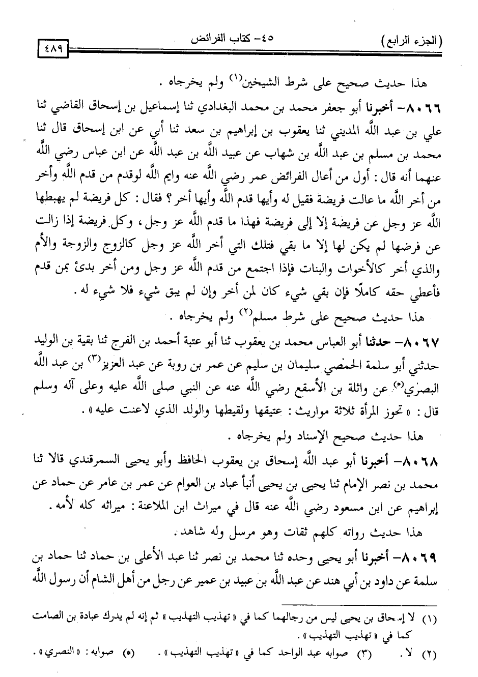 كتاب المستدرك على الصحيحين للحاكم (ت مقبل) (اسم الجزء: 4)