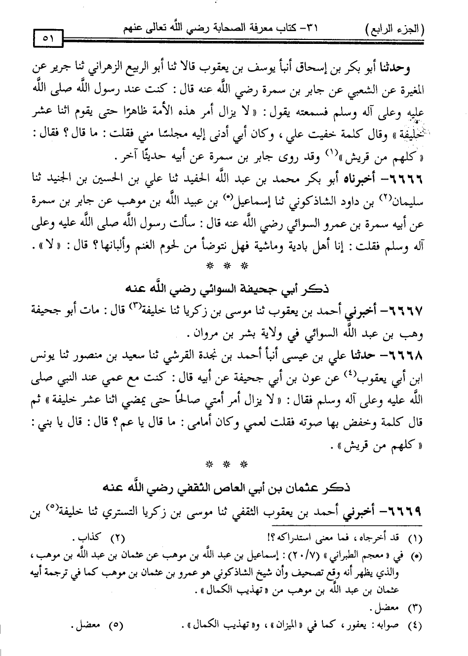 6669 - أَخْبَرَنِي أَحْمَدُ بْنُ يَعْقُوبَ الثَّقَفِيُّ ، ثَنَا مُوسَى بْنُ زَكَرِيَّا التُّسْتَرِيُّ ، ثَنَا خَلِيفَةُ بْنُ -[52]- خَيَّاطٍ ، قَالَ: " عُثْمَانُ بْنُ أَبِي الْعَاصِ بْنِ كَثِيرِ بْنِ دَهْمَانَ بْنِ عَبْدِ اللَّهِ بْنِ هَمَّامِ بْنِ أَبَانَ بْنِ يَسَارِ بْنِ مَالِكٍ يُكَنَّى أَبَا عَبْدِ اللَّهِ مَاتَ سَنَةَ خَمْسِينَ "