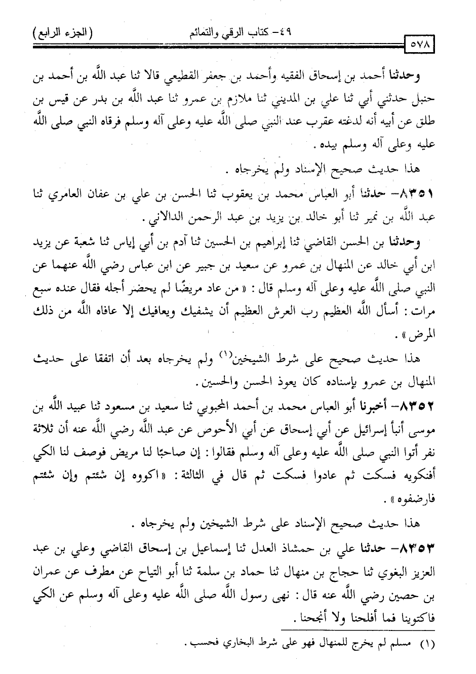 كتاب المستدرك على الصحيحين للحاكم (ت مقبل) (اسم الجزء: 4)