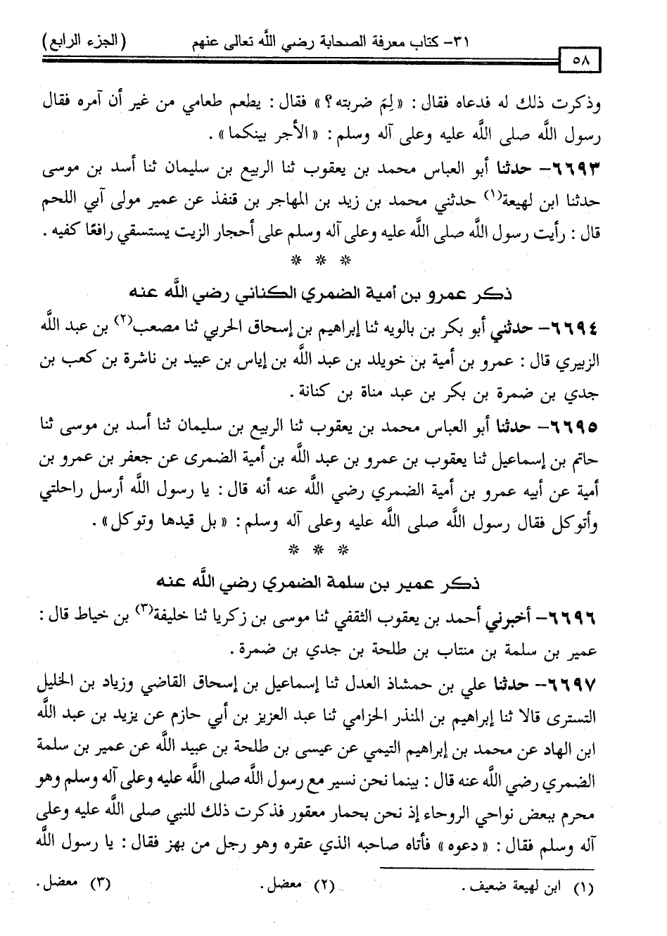 ذِكْرُ عَمْرِو بْنِ أُمَيَّةَ الضَّمْرِيِّ الْكِنَانِيِّ رَضِيَ اللَّهُ عَنْهُ