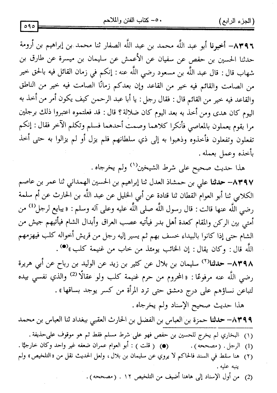 كتاب المستدرك على الصحيحين للحاكم (ت مقبل) (اسم الجزء: 4)