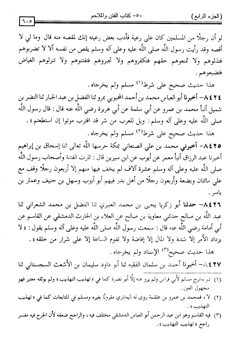 كتاب المستدرك على الصحيحين للحاكم (ت مقبل) (اسم الجزء: 4)