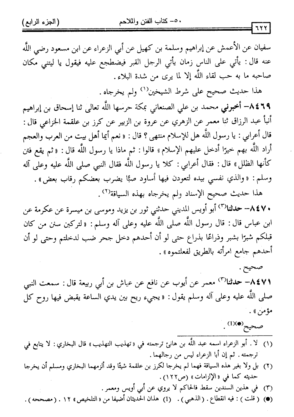كتاب المستدرك على الصحيحين للحاكم (ت مقبل) (اسم الجزء: 4)