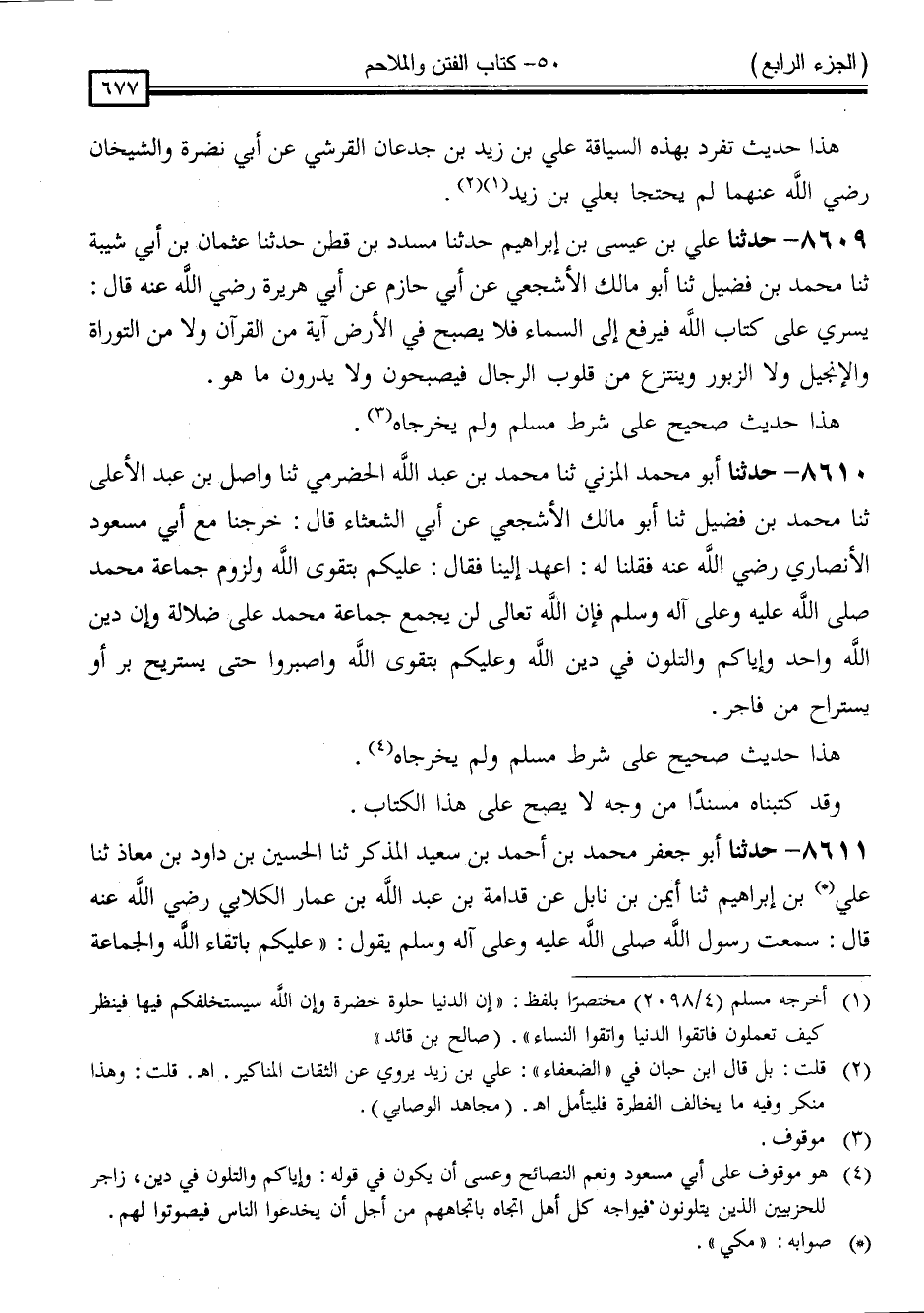 كتاب المستدرك على الصحيحين للحاكم (ت مقبل) (اسم الجزء: 4)