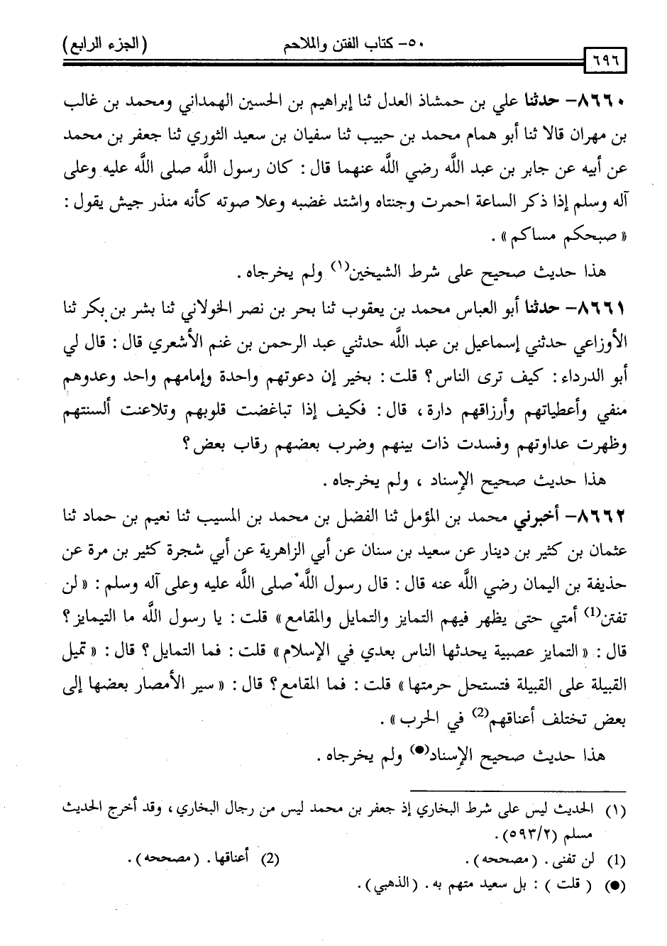 كتاب المستدرك على الصحيحين للحاكم (ت مقبل) (اسم الجزء: 4)