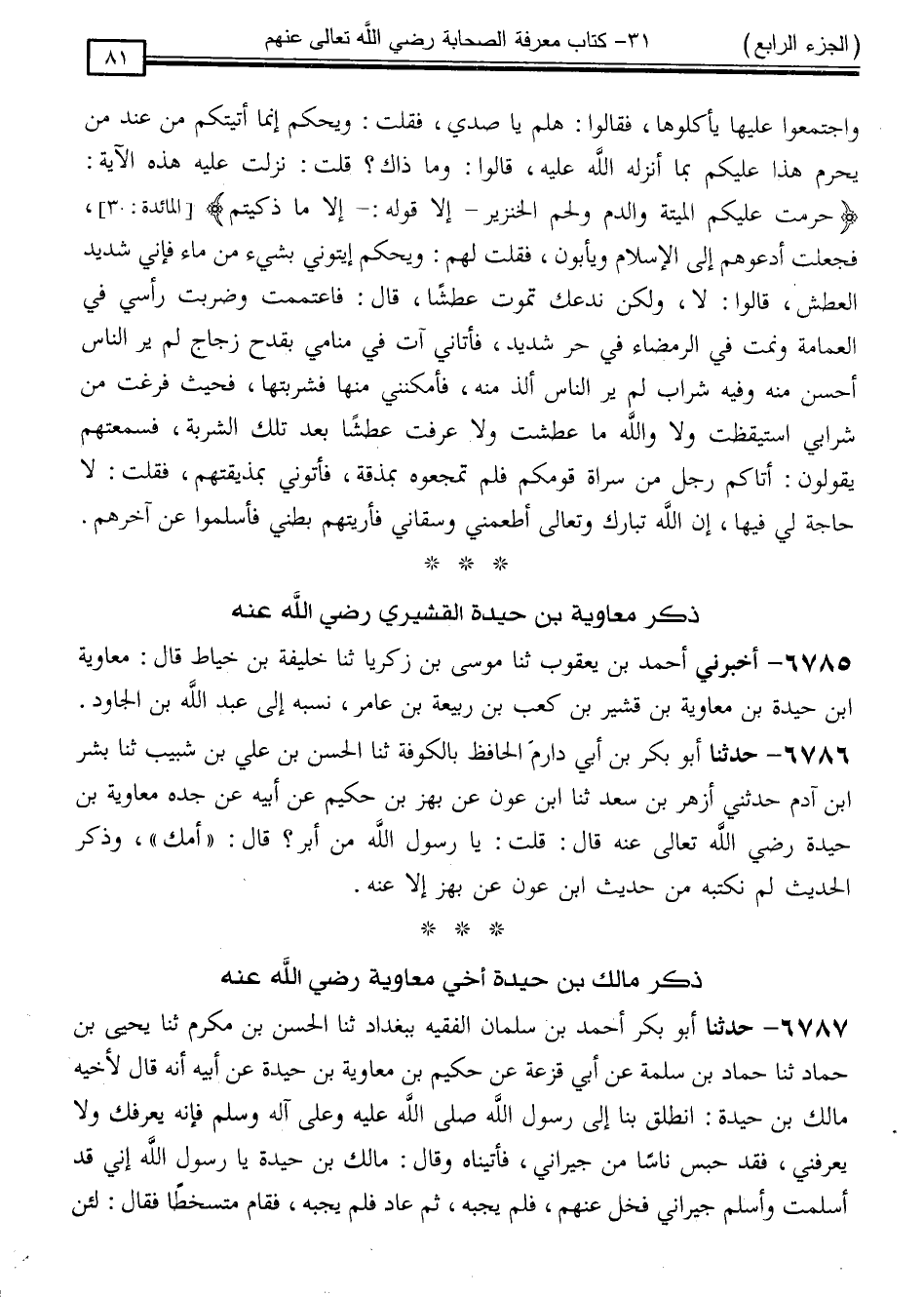 ذِكْرُ مُعَاوِيَةَ بْنِ حَيْدَةَ الْقُشَيْرِيِّ رَضِيَ اللَّهُ عَنْهُ