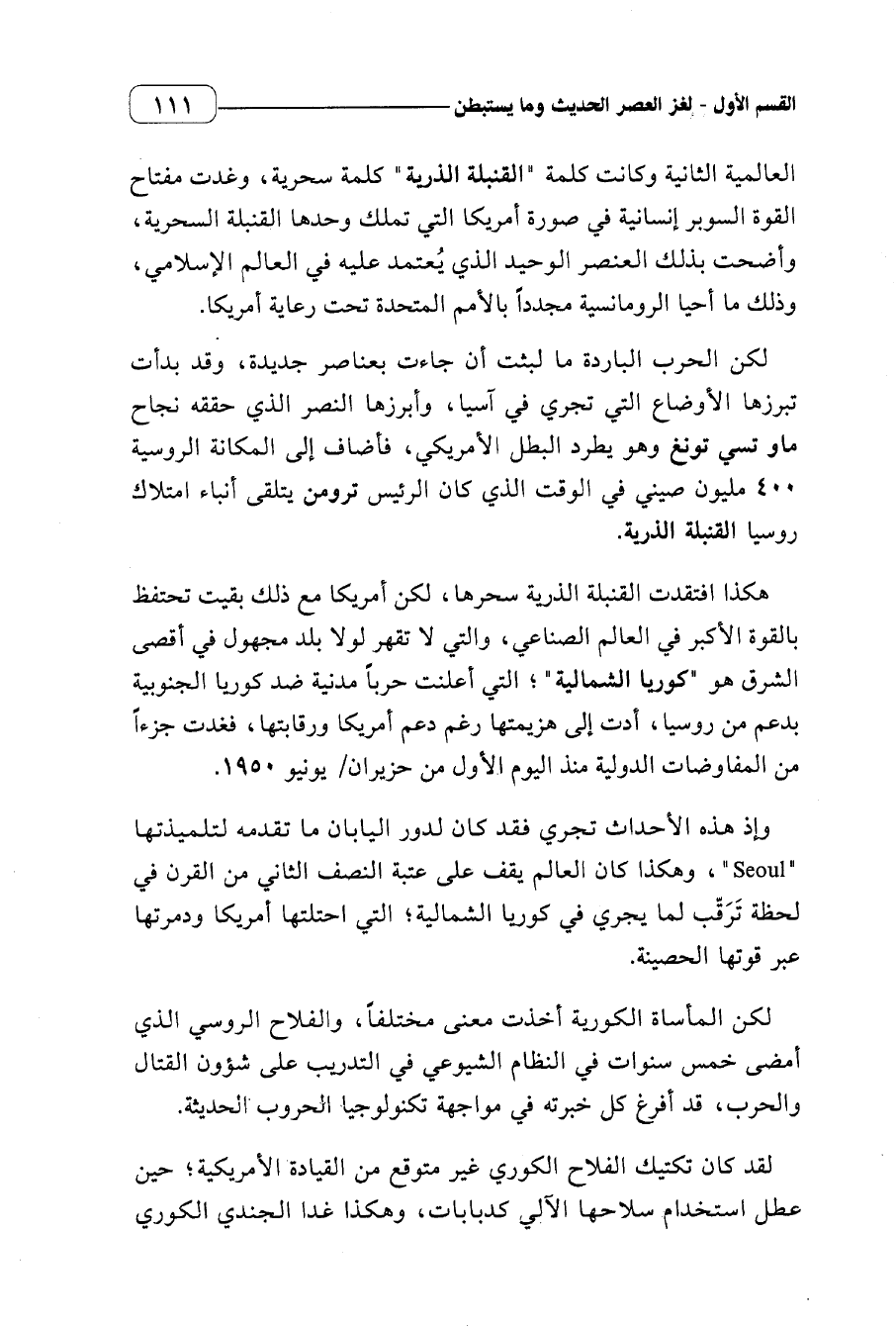 وإذ هذه الأحداث تجري فقد كان لدور اليابان ما تقدمه لتلميذتها (Seoul) ، وهكذا كان العالم يقف على عتبة النصف الثاني من القرن في لحظة ترقب لما يجري في كوريا الشمالية؛ التي احتلتها أمريكا ودمرتها عبر قوتها الحصينة.