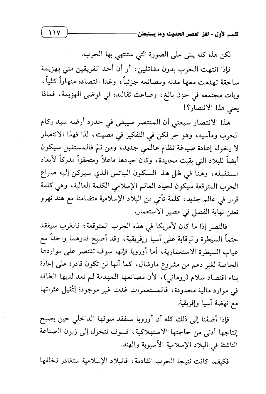 فكيفما كانت نتيجة الحرب القادمة، فالبلاد الإسلامية ستغادر تخلفها