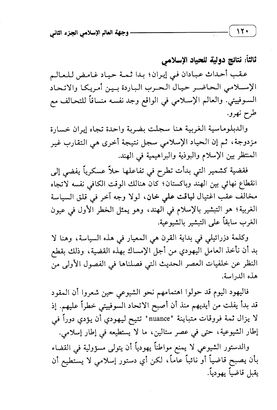 فاليهود اليوم قد حولوا اهتمامهم نحو الشيوعي حين شعروا أن المقود قد بدأ يفلت من أيديهم منذ أن أصبح الاتحاد السوفييتي خطرا عليهم. إذ لا يزال ثمة فروقات متباينة (nuance) تتيح ليهودي أن يؤدي دورا في إطار الشيوعية، حتى في عصر ستالين، ما لا يستطيعه في إطار إسلامي.