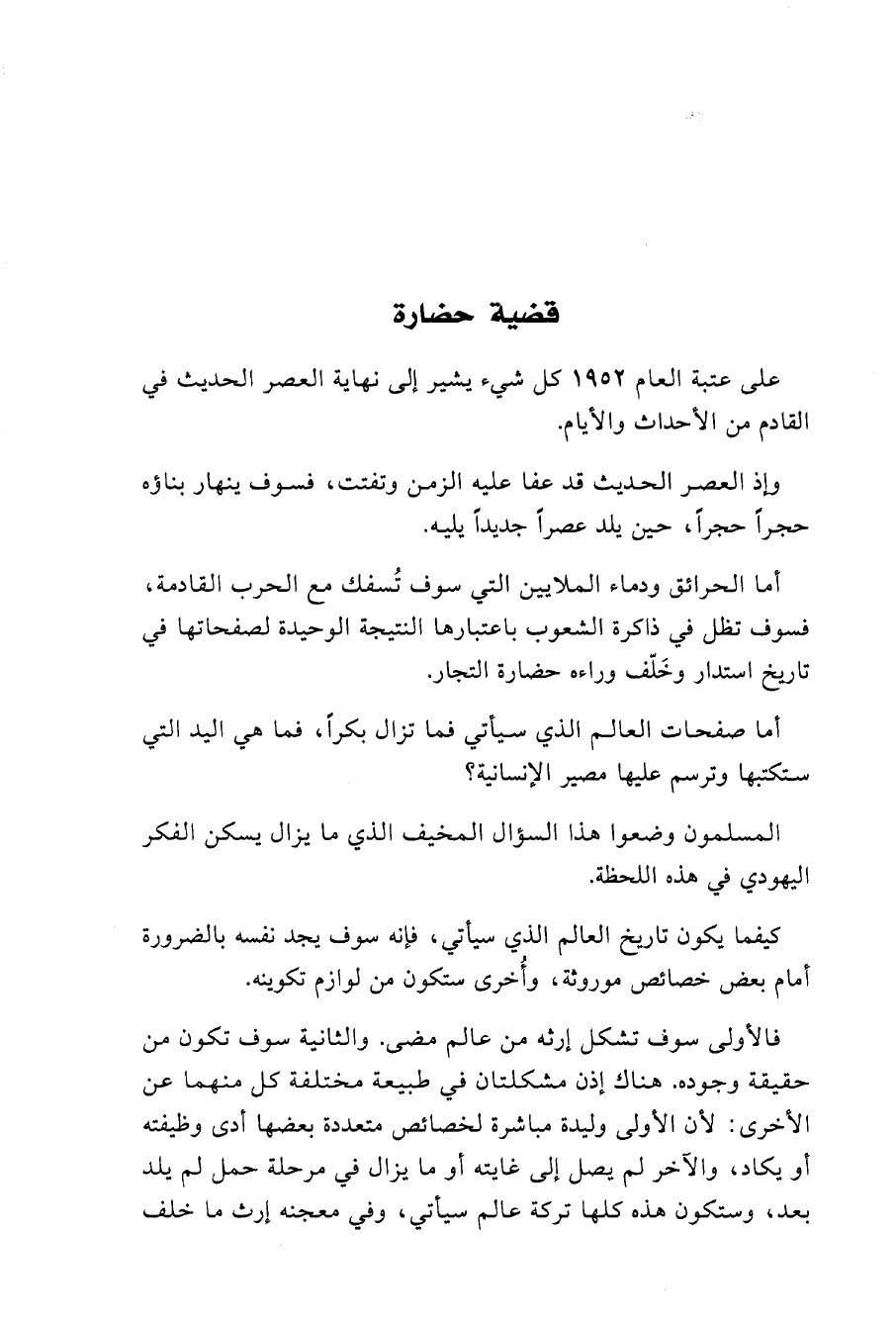 أما صفحات العالم الذي سيأتي فما تزال بكرا، فما هي اليد التي ستكتبها وترسم عليها مصير الإنسانية؟