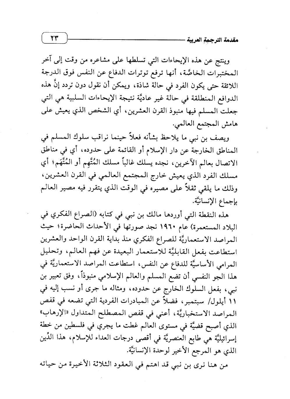 من هنا نرى بن نبي قد اهتم في العقود الثلاثة الأخيرة من حياته