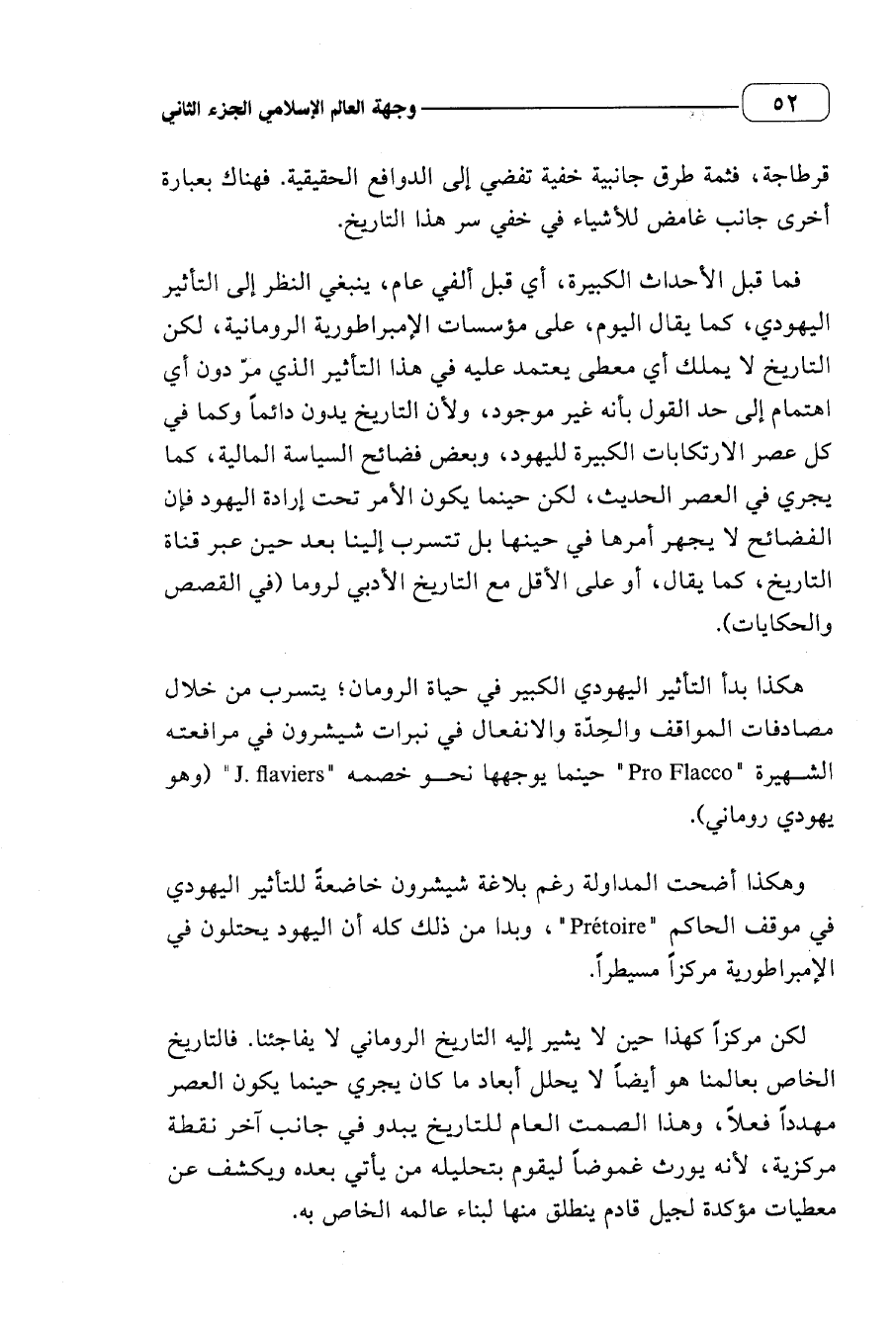 هكذا بدأ التأثير اليهودي الكبير في حياة الرومان؛ يتسرب من خلال مصادفات المواقف والحدة والانفعال في نبرات شيشرون في مرافعته الشهيرة (ProFlaco) حينما يوجهها نحو خصمه (J. flaviers) (وهو