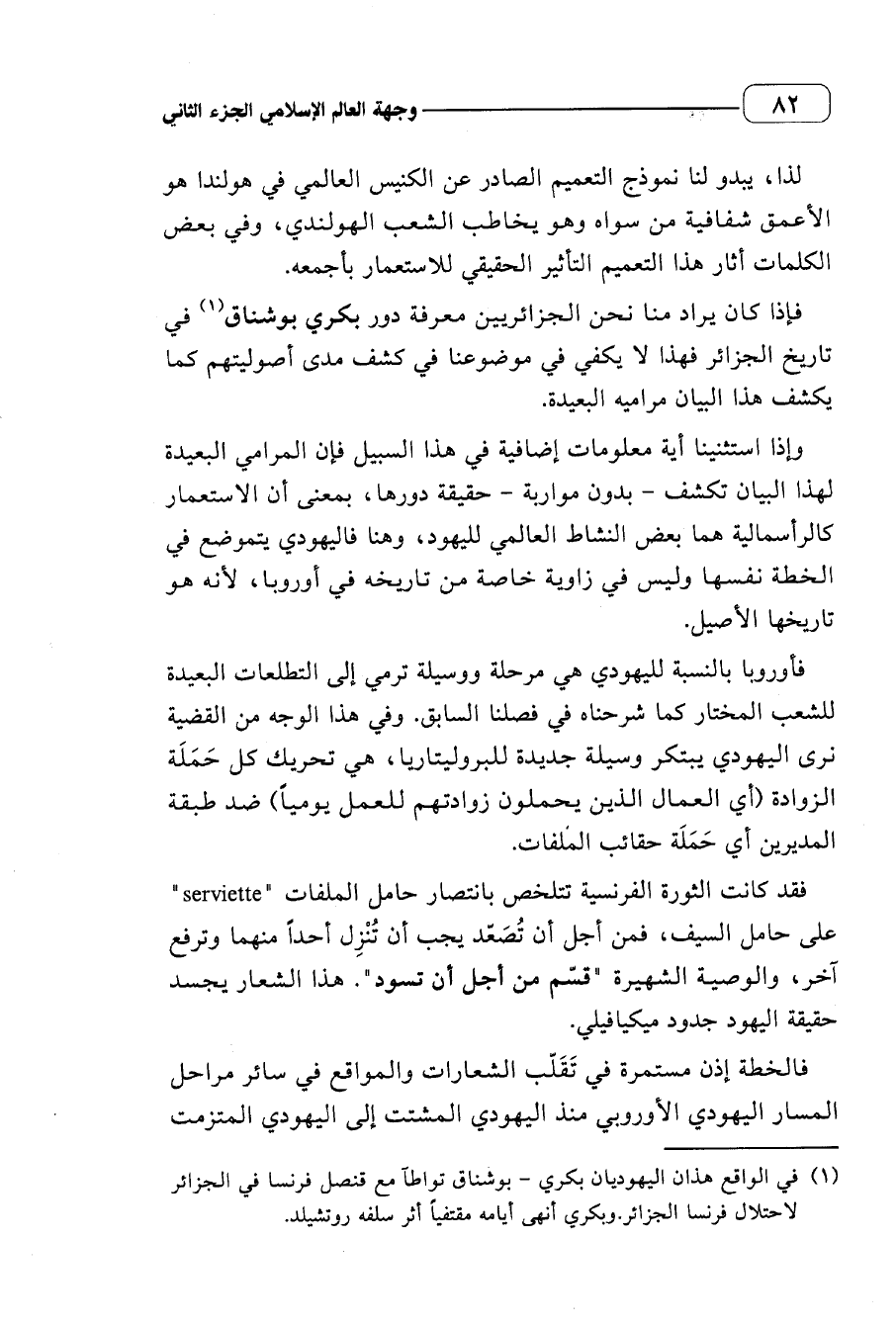وإذا استثنينا أية معلومات إضافية في هذا السبيل فإن المرامي البعيدة لهذا البيان تكشف - بدون مواربة - حقيقة دورها، بمعنى أن الاستعمار كالرآسمالية هما بعض النشاط العالمي لليهود، وهنا فاليهودي يتموضع في
