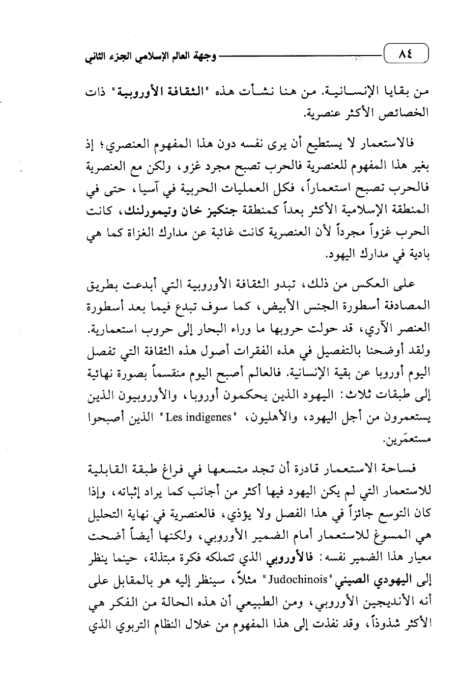 من بقايا الإنسانية. من هنا نشأت هذه (الثقافة الأوروبية) ذات الخصائص الأكثر عنصرية.