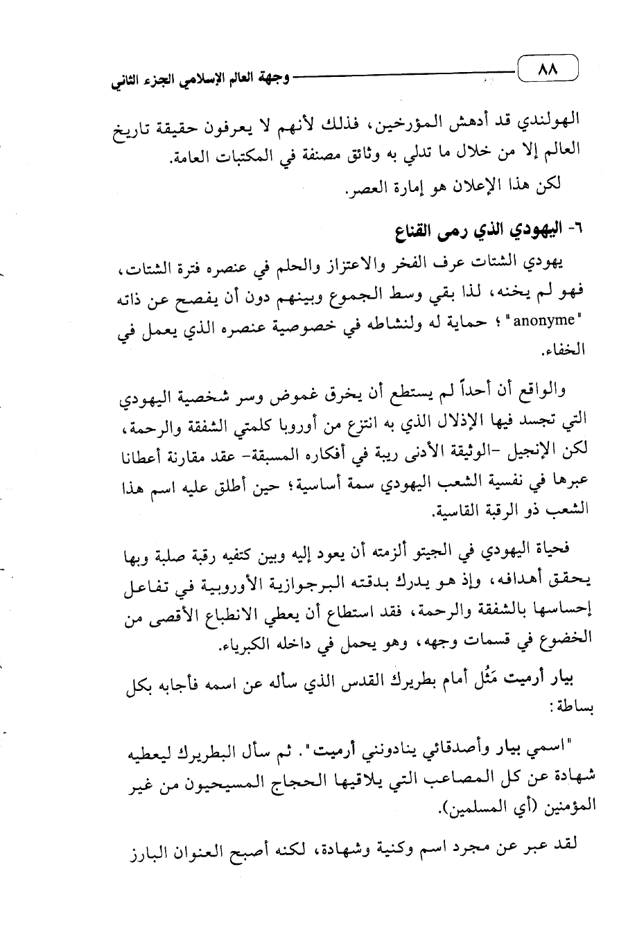 (اسمي بيار وأصدقائي ينادونني أرميت). ثم سأل البطريرك ليعطيه شهادة عن كل المصاعب التي يلاقيها الحجاج المسيحيون من غير المؤمنين (أي المسلمين).