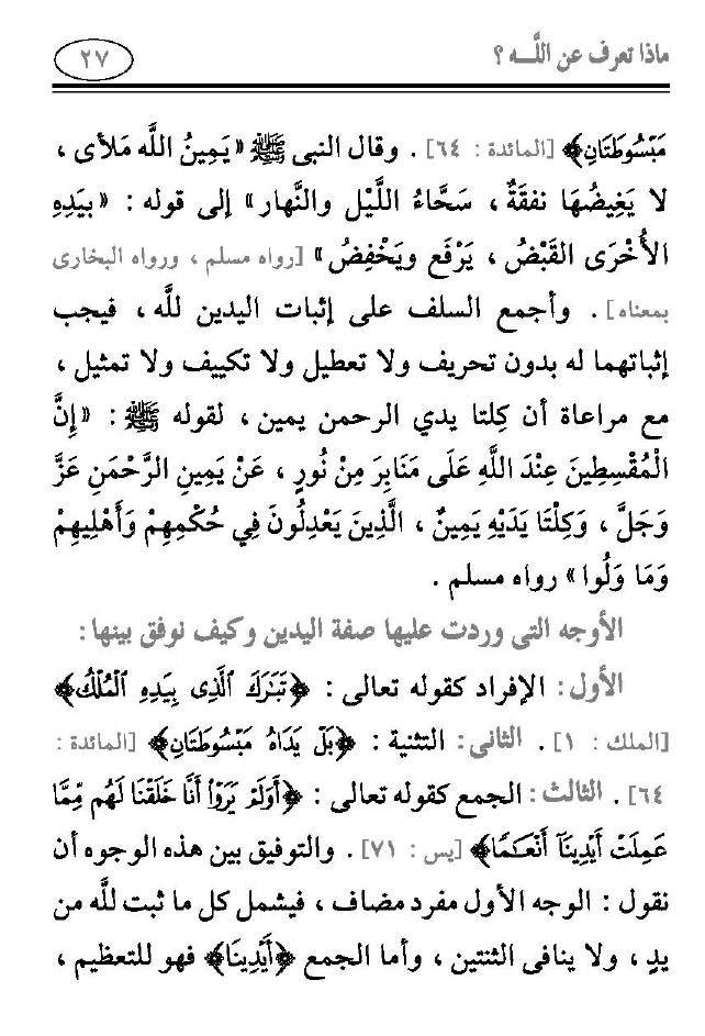 الأوجه التي وردت عليها صفة اليدين وكيف نوفق بينها: