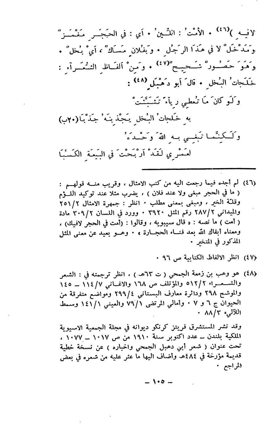 لا فيه). الأَمْت: اللين. أي في الحجر مغمز ومدخل لا في هذا الرجل. وبفلان مَساكٌ أي بخل. وهو حَصُورٌ شحيح. ومن ألفاظ الشعراء: خلَجات البخل. قال أبو دهبل: