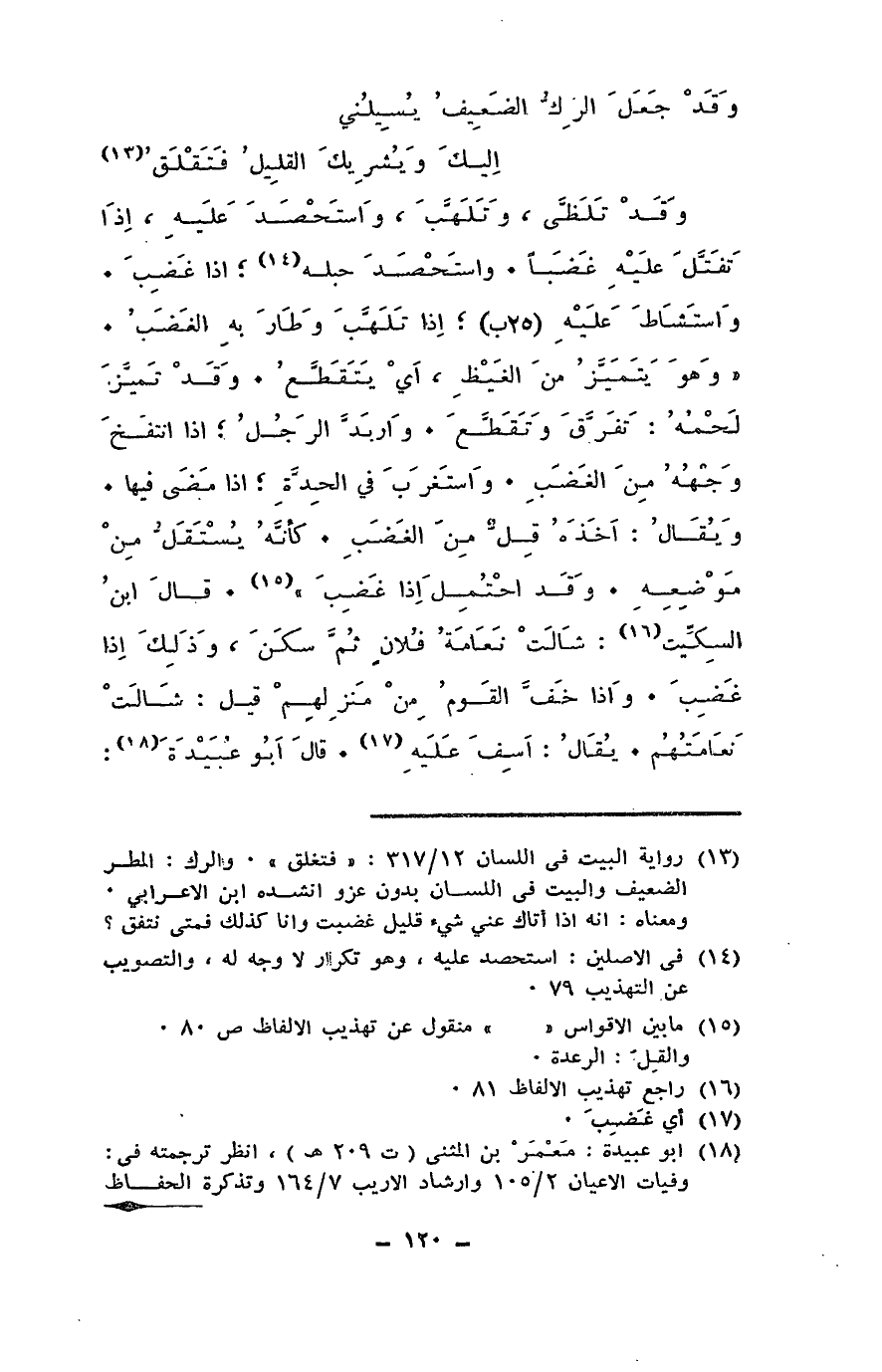 وقد جعل الرِكُّ الضعيفُ يُسيلُني ... إليكَ ويشريك القليل فتقلق