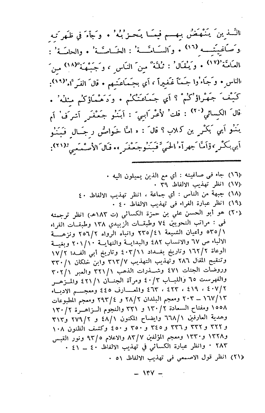 الذين ينهض بهم فيما يحزبه. وجاء في ظهرته وصاغيته. والسامّة: الخاصة. والحامة: العامة. ويقال: ثُلّة من الناس، وجَبْهة من الناس. وجاءوا جما غفيرا، أي بجماعتهم. وقال الفراء: كيف جهراؤكم؟ أي جماعتكم. ودهماؤكم مثله. قال الكسائي: قلت لأعرابي: أبنو جعفر أشرف أم بنو أبي بكر بن كلاب؟ قال: أما خواص رجال فبنو أبي بكر، وأما جهراء الحي فبنو جعفر. قال الأصمعي: