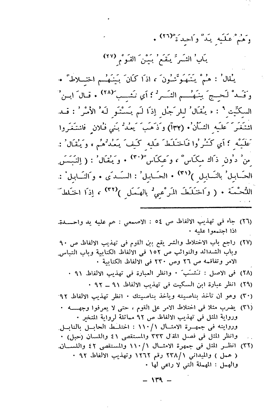 يقال: هم يتهوّشون، إذا كان بينهم اختلاط. وقد لحِج بينهم الشر؛ أي نشِب. قال ابن السكيت: يقال للرجل إذا لم يستو له الأمر: قد اشتغر عليه الشأن. وذهب يعُد بني فلان فاشتغروا عليه؛ أي كثروا فاختلط عليه كيف يعُدهم، ويقال: من دون ذاك مِكاسٌ وعكاس. ويقال: التبس الحابل بالنابل. الحابل: السدَى. والنابل: اللحمة. واختلط المرعيّ بالهمل، إذا اختلط