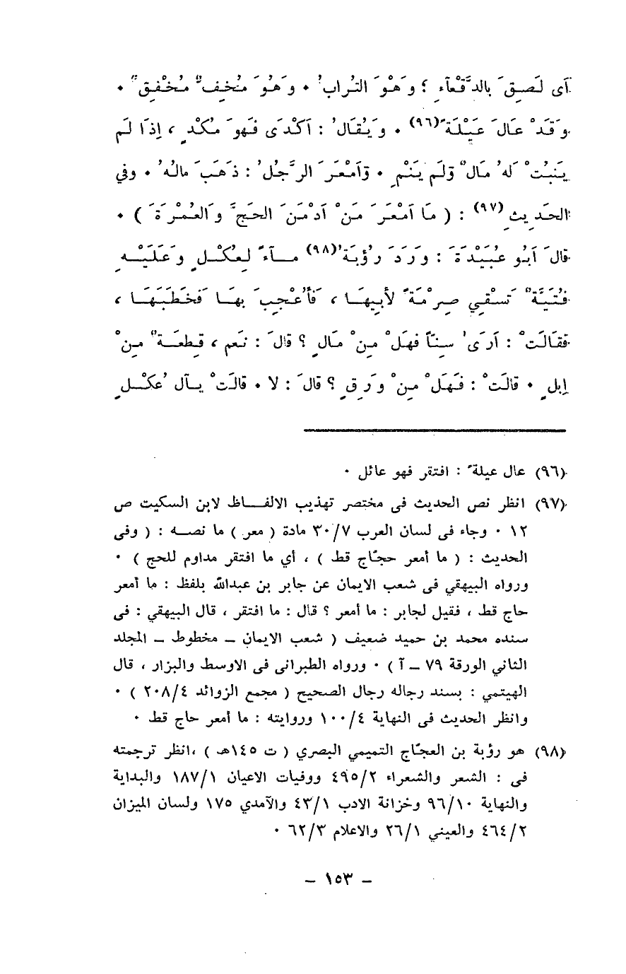 أي لصق بالدقعاء؛ وهو التراب. وهو مُخِفّ مخفق. وقد عال عيلة. ويقال: أكدى فهو مكدٍ، إذا لم ينبت له مال ولم ينمِ. وأمعر الرجل: ذهب ماله. وفي الحديث: ما أمعر من أدمن الحج والعمرة. قال أبو عبيدة: ورد رؤبة ماءً لعكل وعليه فُتَيّة تسقي صرمة لأبيها، فأعجب بها فخطبها، فقالت: أرى سنا فهل من مال؟ قال: نعم قطعة من إبل. قالت: فهل من ورق؟ قال: لا. قالت: يآل عكل