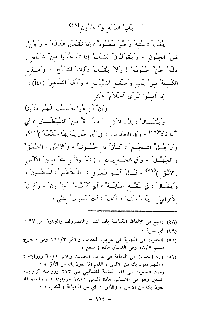 يقال: عُتِه وهو معتوهٌ، إذا نقص عقله. وجن من الجنون. ويقولون للشاب إذا تعجبوا من شبابه: ما له جن جنونه! ولا يقال ذلك للشيخ. وهذه الكلمة من باب وصف الشباب. وقال الشاعر: