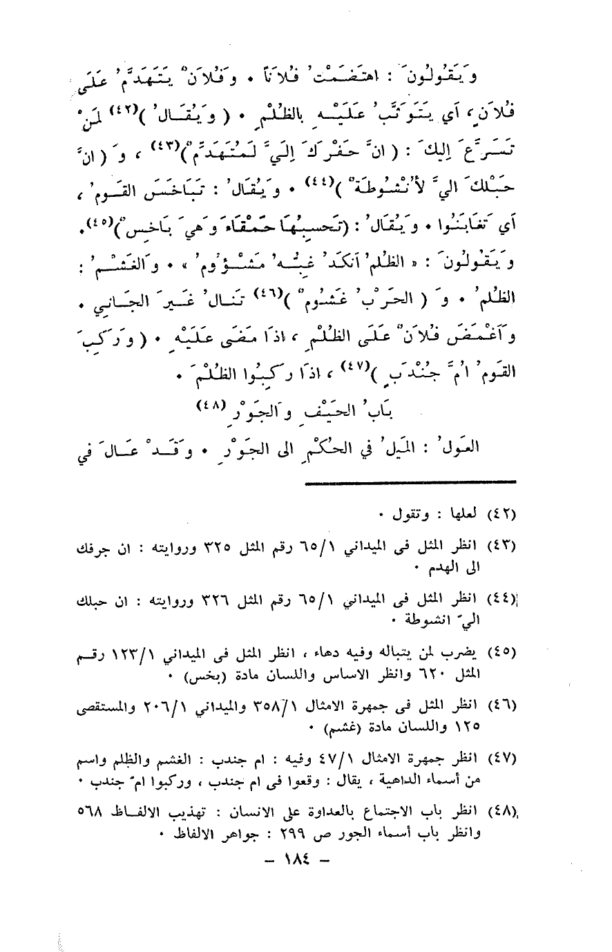 ويقولون: اهتضمت فلانا. وفلان يتهدم على فلان، أي يتوثب عليه بالظلم. ويقال لمن تسرع إليك: إنّ حفرَك إليَّ لمتهدّم، وإن حبلك إليَّ لأنشوطة. ويقال: تباخس القوم، أي تغابنوا. ويقال: تحسبها حمقاء وهي باخس. ويقولون: الظلم أنكد غِبُّه مشؤوم. والغشم الظلم. والحرب غشوم؛ تنال غير الجاني. وأغمض فلان على الظلم، إذا مضى عليه. وركب القوم أمَّ جندب، إذا ركبوا الظلم.