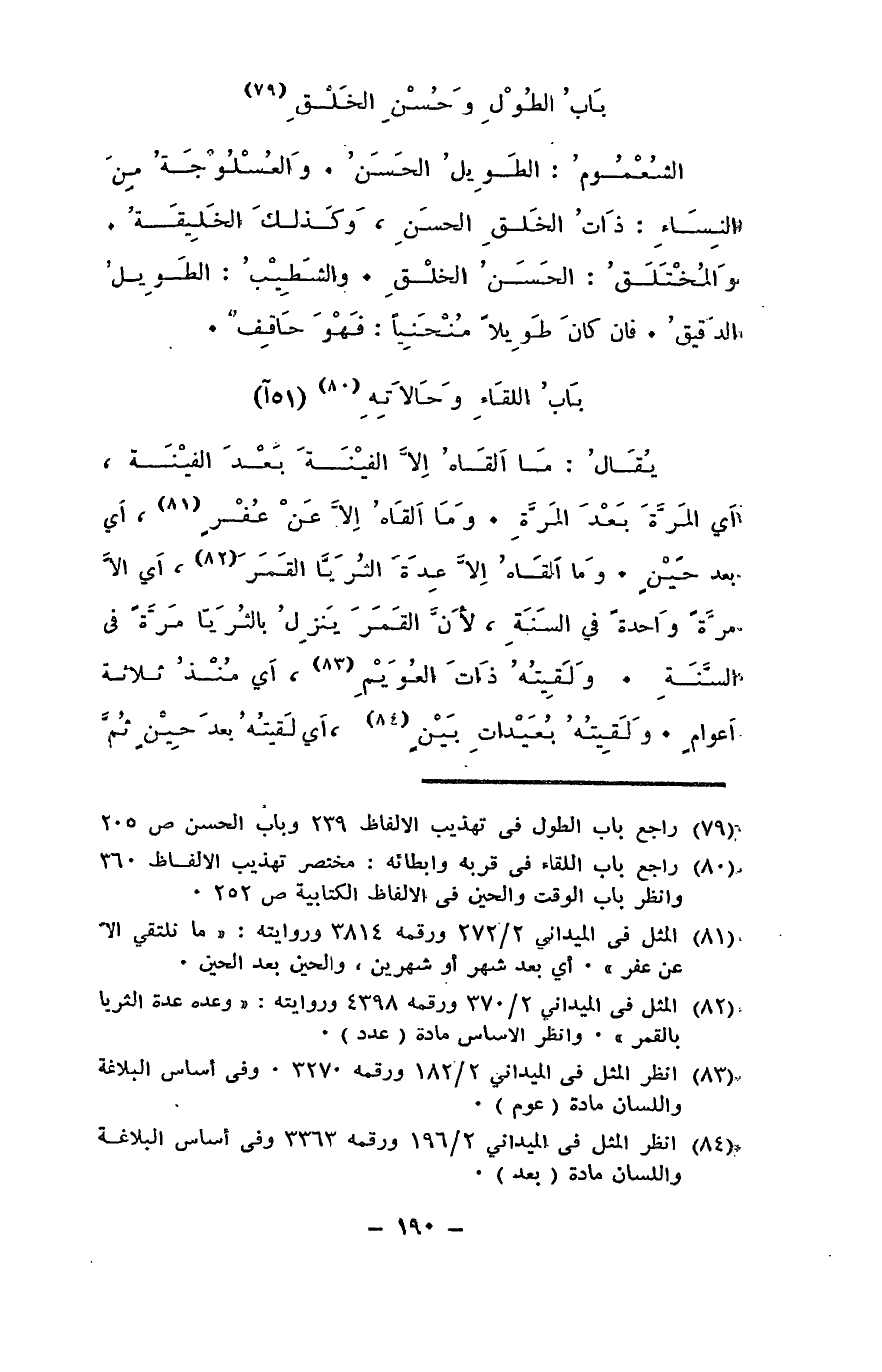 يقال: ما ألقاه إلا الفينة بعد الفينة، أي المرة بعد المرة. وما ألقاه إلا عن عُفْر، أي بعد حين. وما ألقاه إلا عدةَ الثريا القمرَ، أي إلا مرة واحدة في السنة، لأن القمر ينزل بالثريا مرة في السنة. ولقيته ذات العويم، أي منذ ثلاثة أعوام. ولقيته بعيدان بين، أي لقيته بعد حين ثم