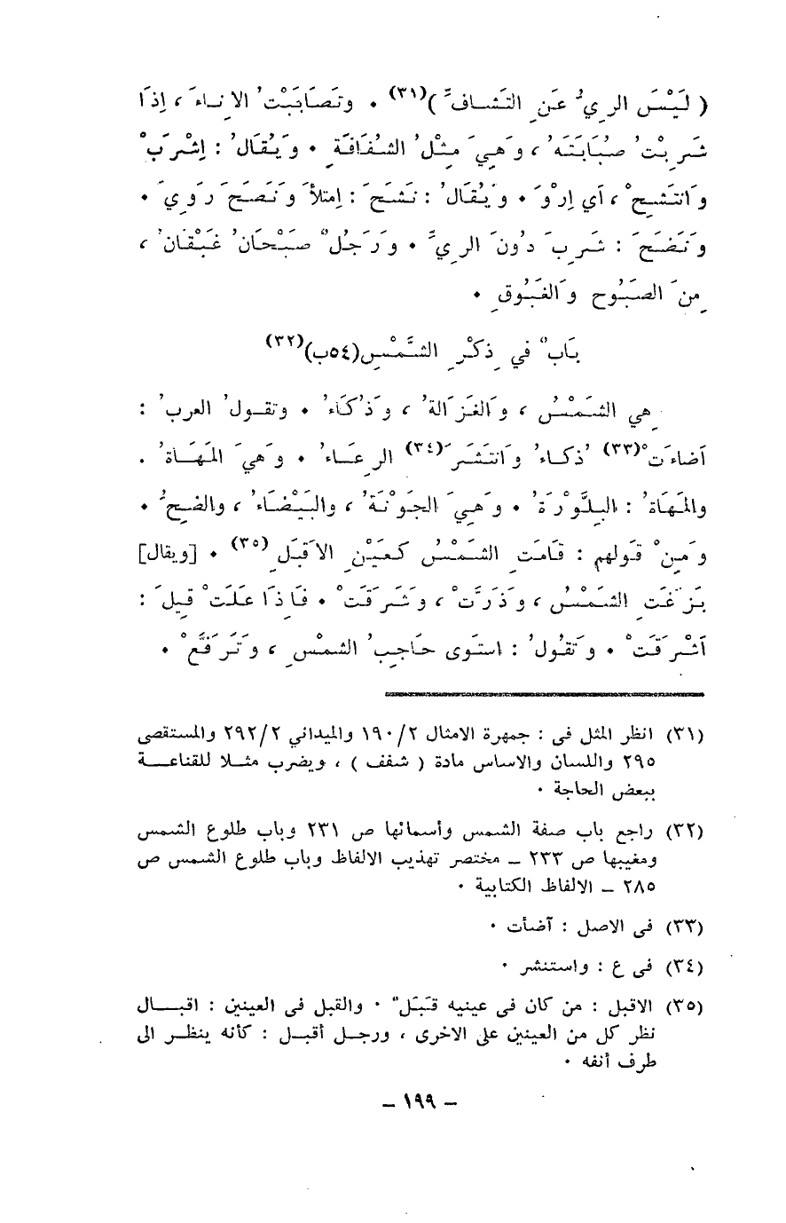 ليس الري عن التشافّ. وتصاببت الإناءَ، إذا شربت صبابته، وهي مثل الشفافة. ويقال: اشرب وانتشِح، أي اروَ. ويقال: نشَح: امتلأ ونصح روِي. ونضَح: شرب دون الري. ورجل صبحان غبقان، من الصبوح والغبوق.