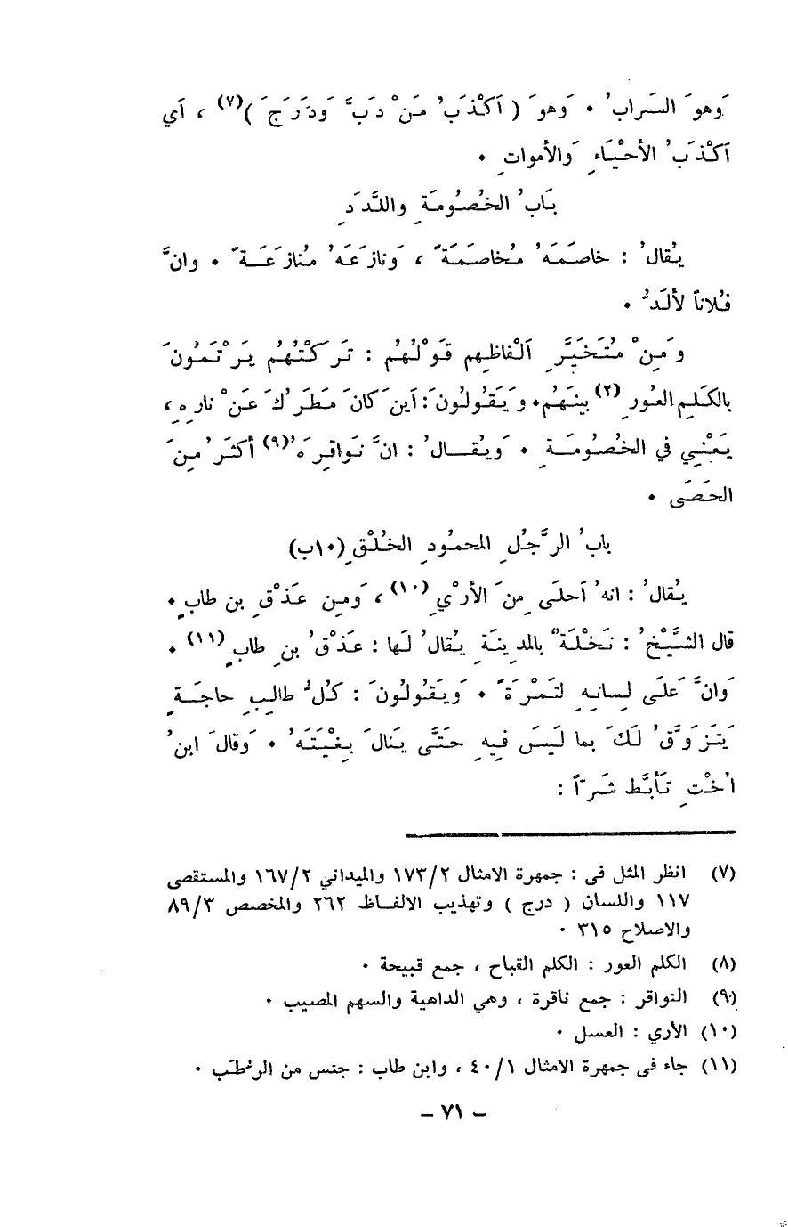 ومن متخير ألفاظهم قولهم: تركتُهم يَرتَمُون بالكَلِم العُورِ بينهم. ويقولون: أين كان مَطَرُك عن نارِه، يعني في الخصومة. ويقال: إن نَواقِرَه أكثرُ من الحصى.