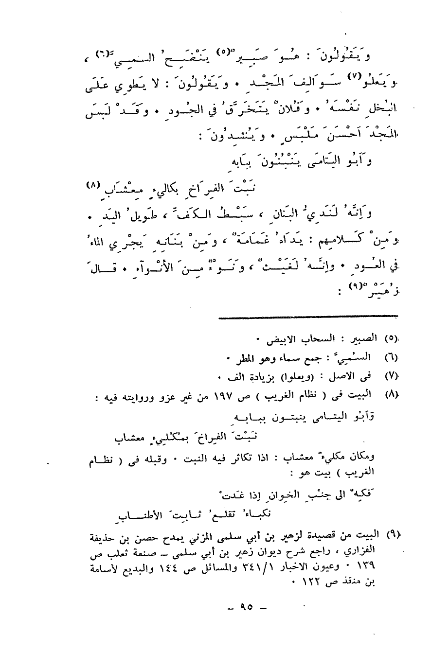 وإنه لنديُّ البنان، سبط الكف، طويلُ اليد. ومن كلامهم: يداه غمامة، ومن بنانه يجري الماء في العود. وإنه لغيثٌ، ونوءٌ من الأنواء. قال زهير:
