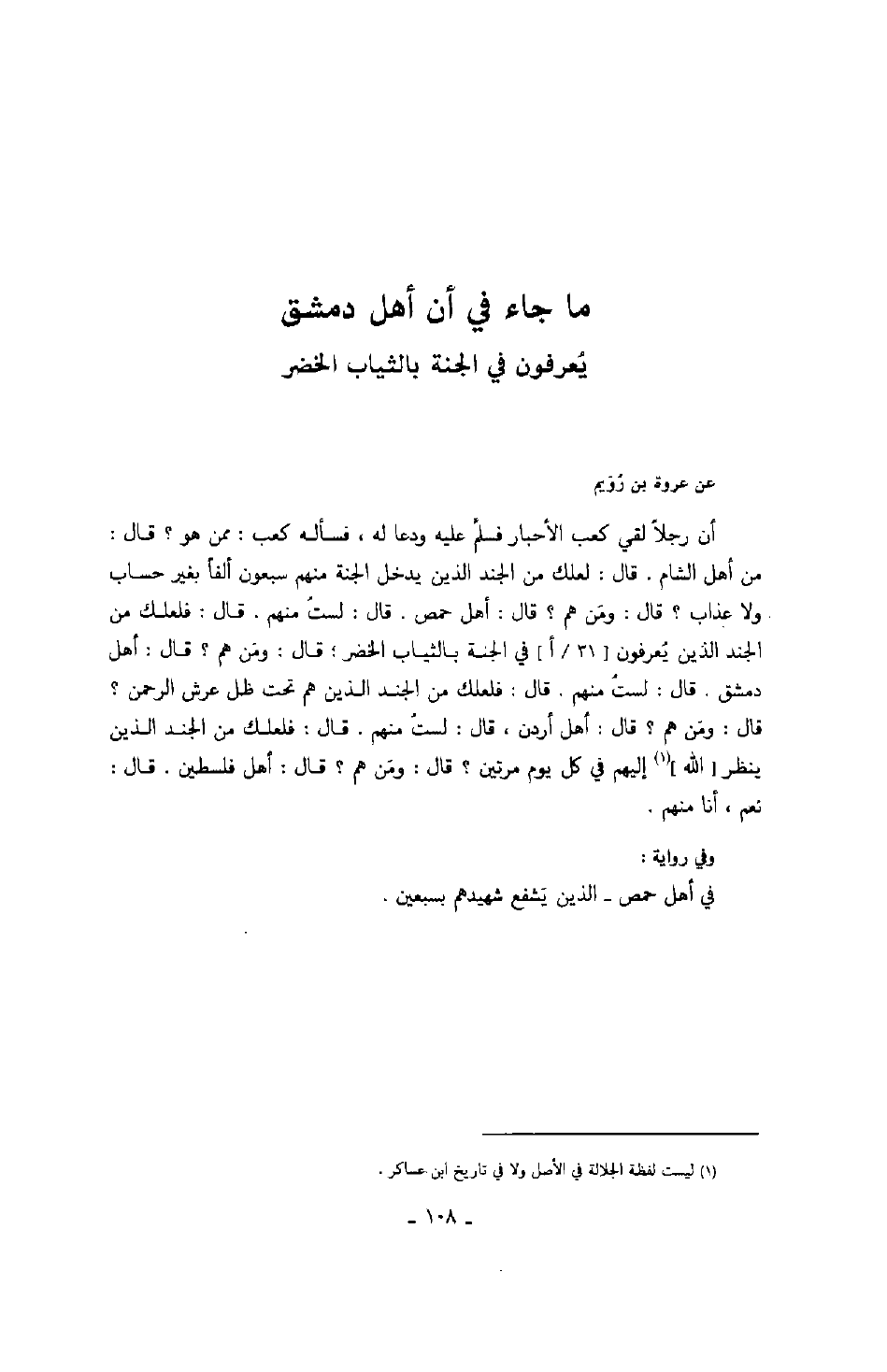 ما جاء في أن أهل دمشق يعرفون في الجنة بالثياب الخضر