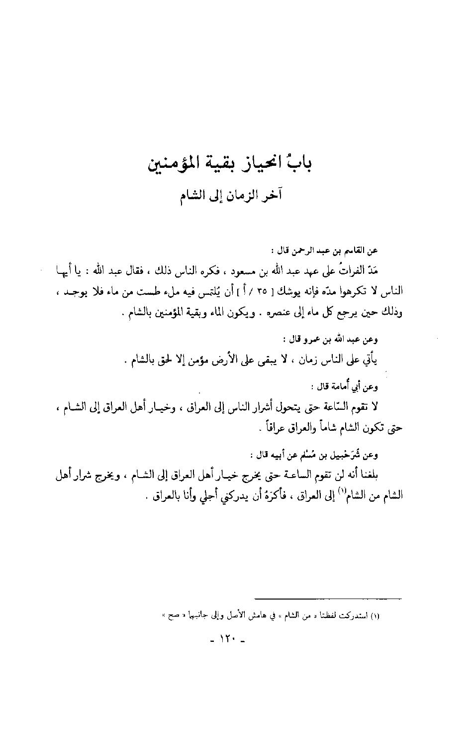باب انحياز بقية المؤمنين آخر الزمان إلى الشام