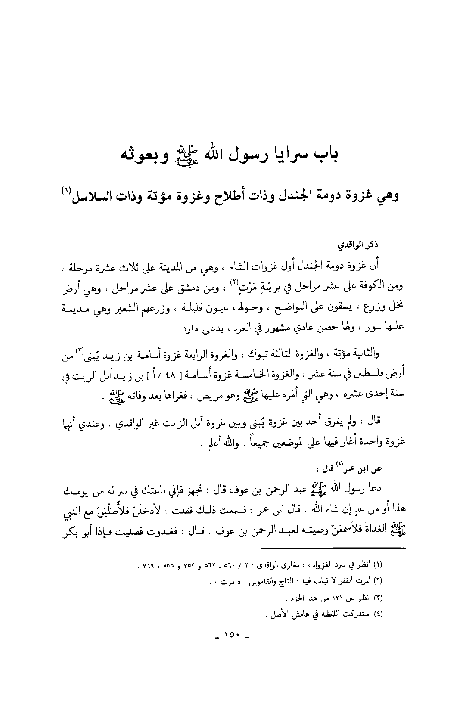 وبعوثه وهي غزوة دومة الجندل وذات أطلاح وغزوة مؤتة وذات السلاسل