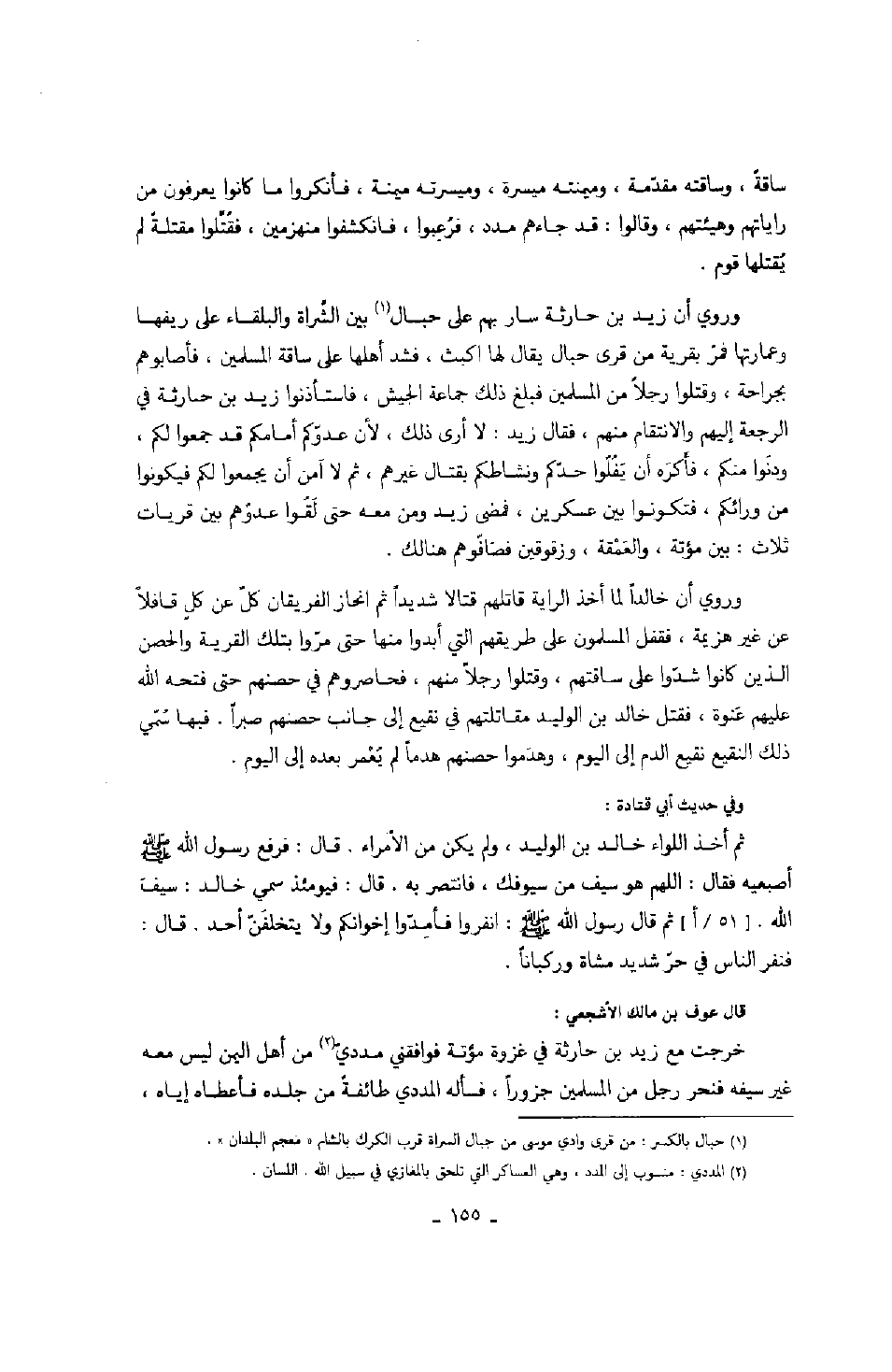 خرجت مع زيد بن حارثة في عزوة مؤتة فوافقني مددي من أهل اليمن ليس معه غير سيفه فنحر رجل من المسلمين جزوراً، فسأله المددي طائفة من جلده فأعطاه إياه،