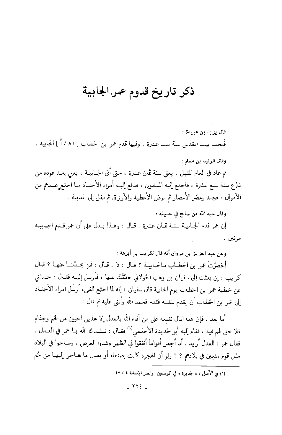 ذكر تاريخ قدوم عمر الجابية