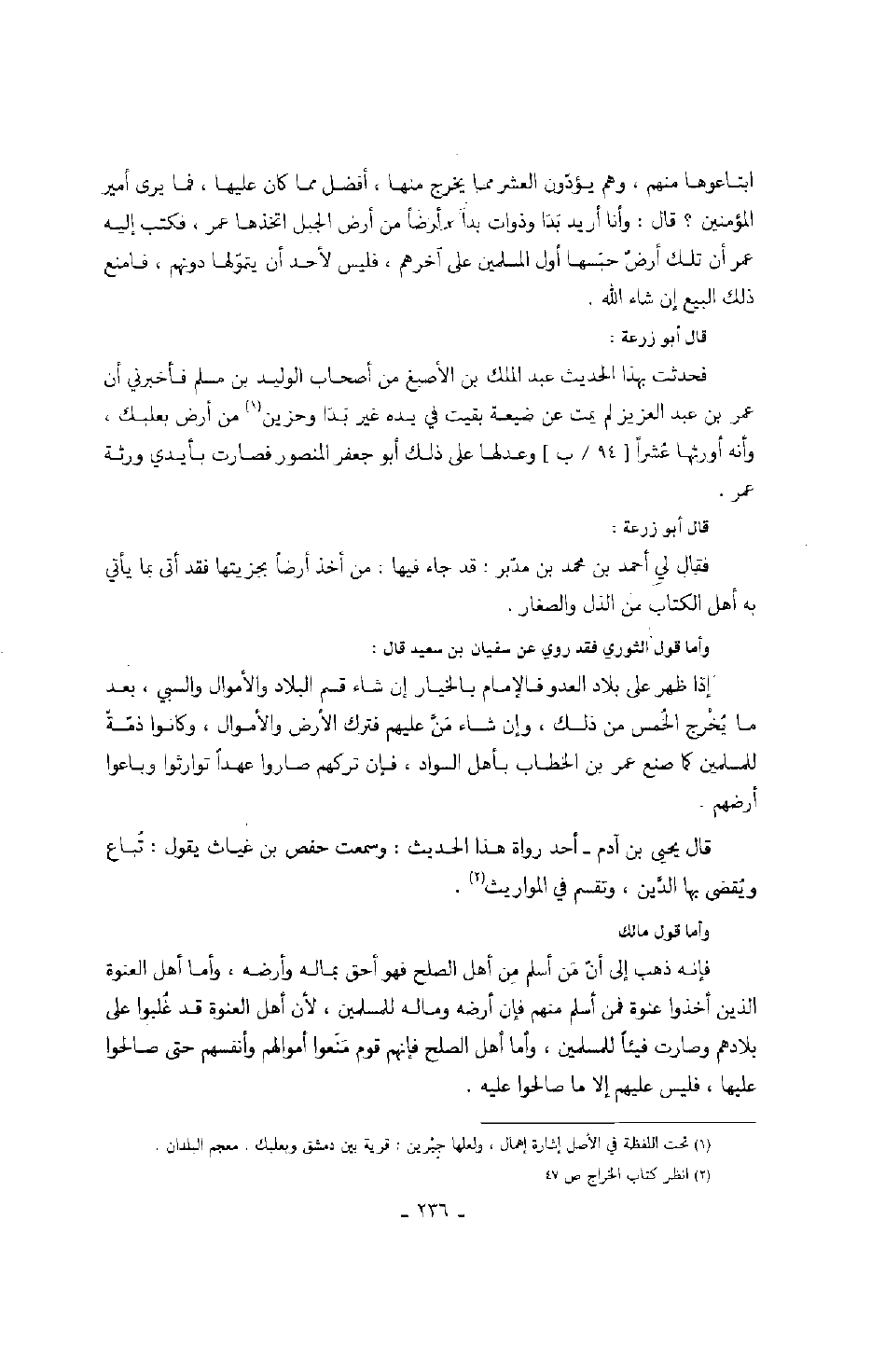 قال أبو زرعة: فقال لي أحمد بن محمد بن مدبر: قد جاء فيها: من أخذ أرضاً بجزيتها فقد أتى بما يأتي به أهل الكتاب من الذل والصغار.