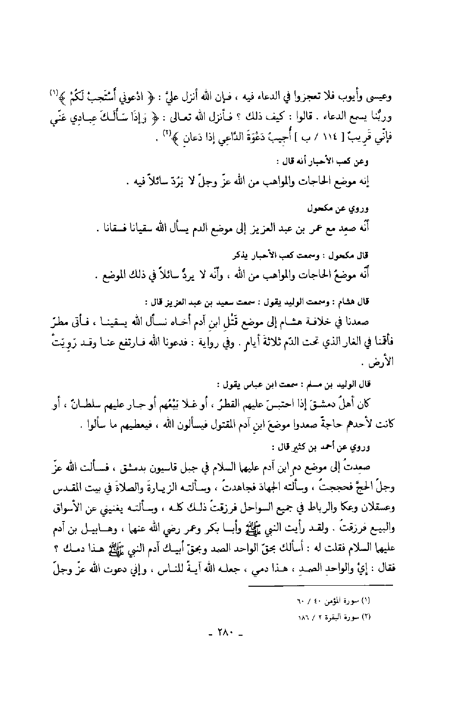 وروي عن مكحول أنه صعد مع عمر بن عبد العزيز إلى موضع الدم يسأل الله سقياناً فسقاناً.