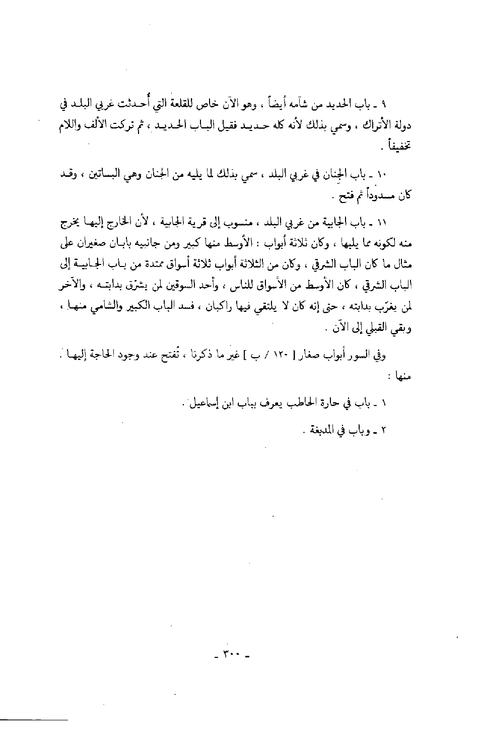 وفي السور أبواب صغار غير ما ذكرنا، تفتح عند وجود الحاجة إليها. منها: باب في حارة الحاطب يعرف بباب ابن إسماعيل.