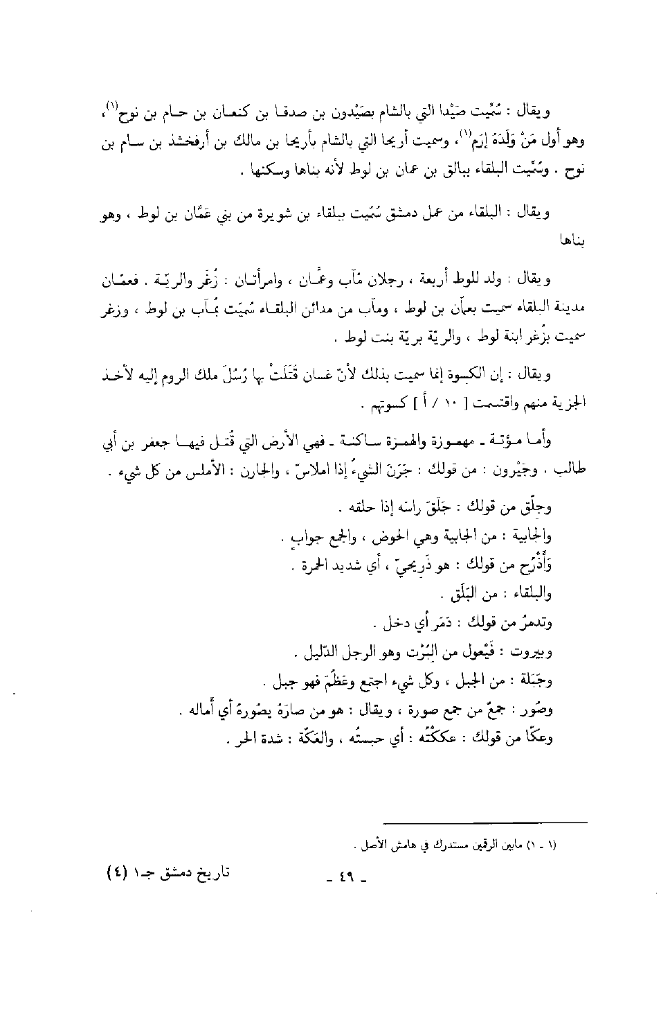 ويقال: سميت صيدا التي بالشام بصيدون بن صدقا بن كنعان بن حام بن نوح، وهو أول من ولده إرم، وسميت أريحا التي بالشام بأريحا بن مالك بن أرفخشذ بن سام بن نوح. وسميت البلقاء ببالق بن عمان بن لوط لأنه بناها وسكنها.