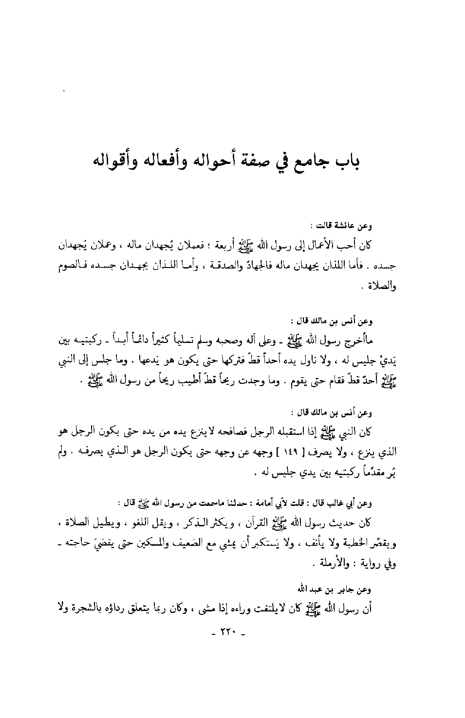 باب جامع في صفة أحواله وأفعاله وأقواله
