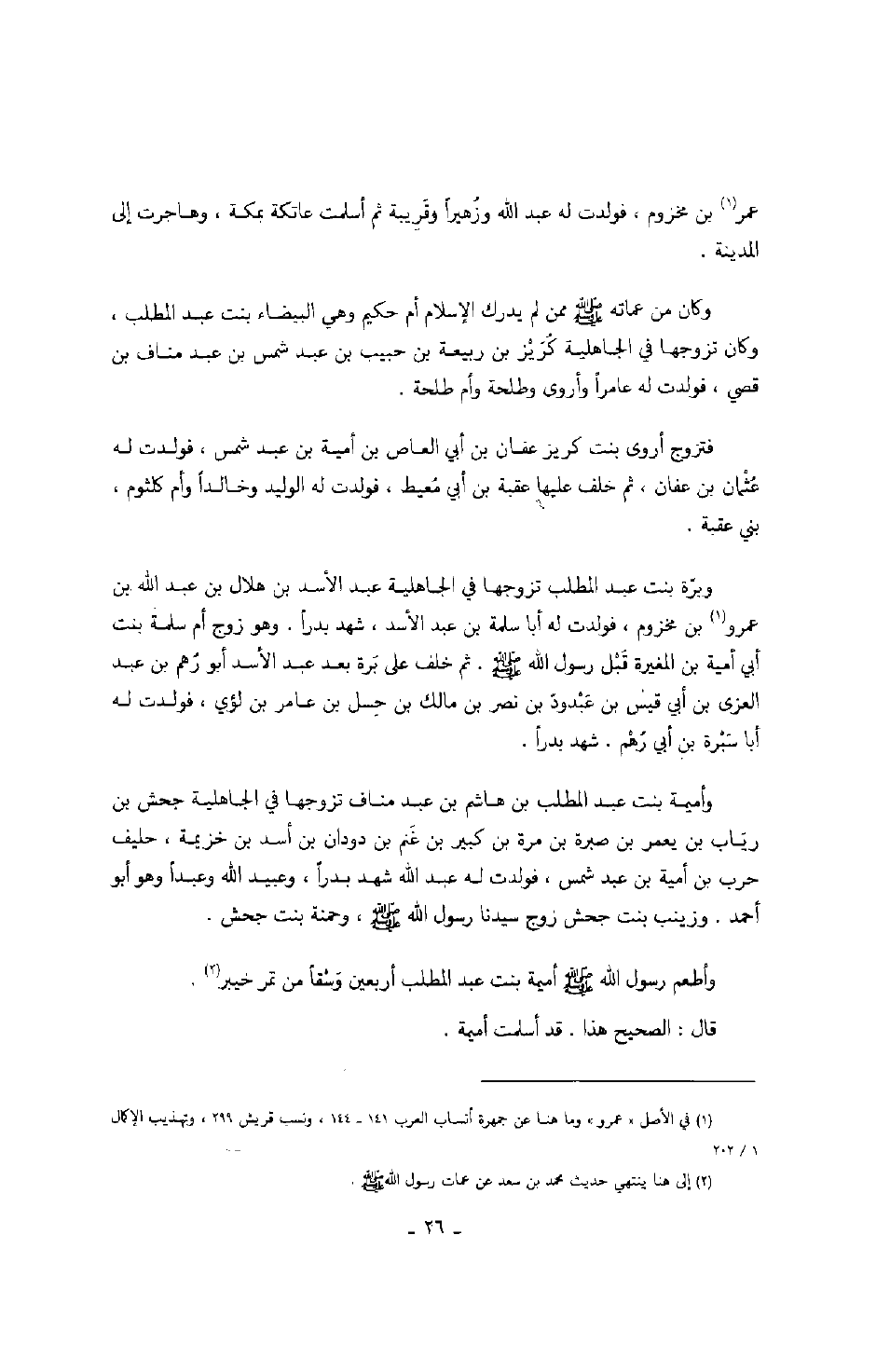 وأطعم رسول الله صَلَّى اللهُ عَلَيْهِ وَسَلَّمَ أميمة بنت عبد المطلب أربعين وسقاً من تمر خيبر. قال: الصحيح هذا. أسلمت أميمة.