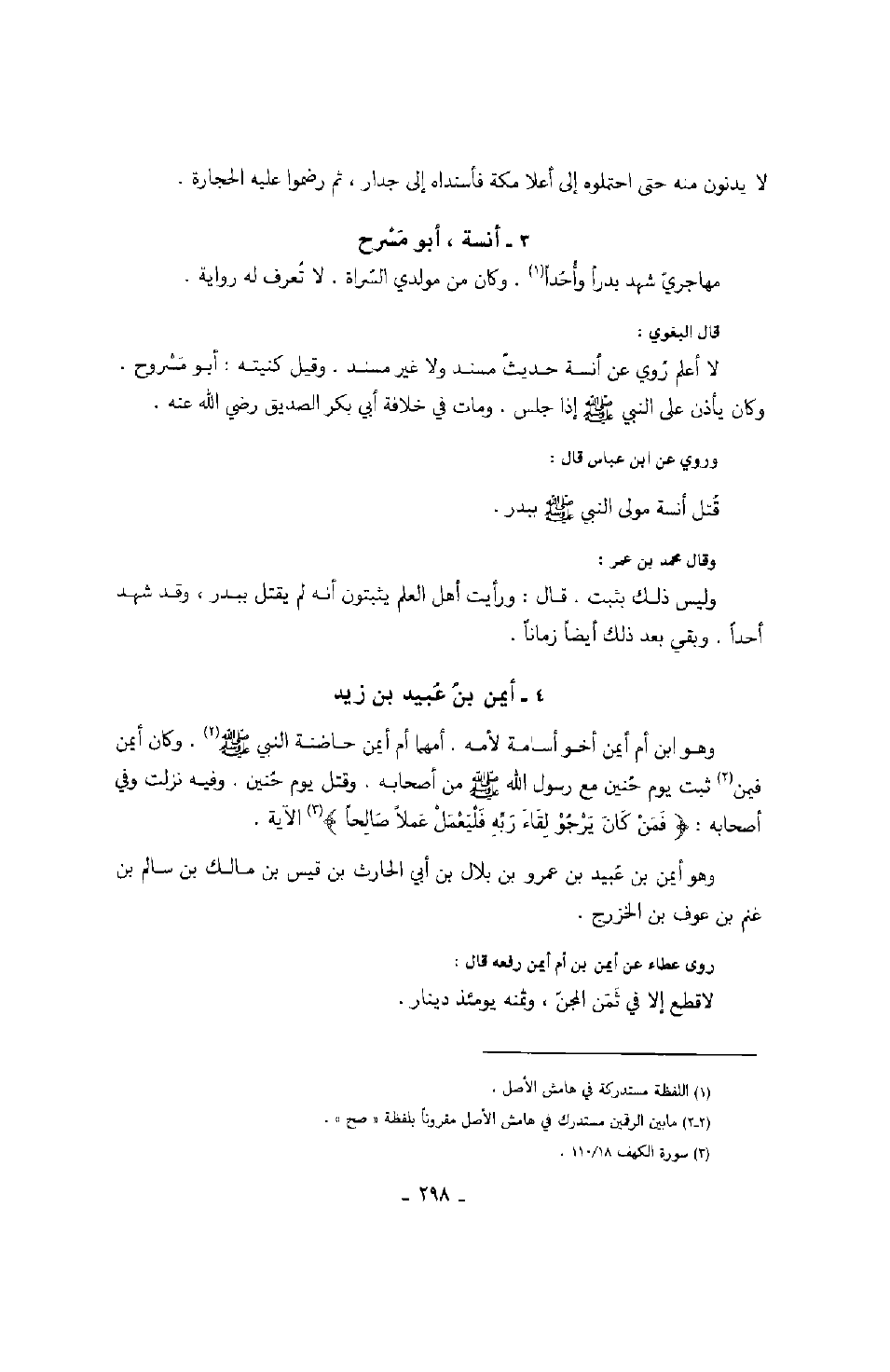وهو ابن أم أيمن أخو أسامة لأمه. أمهما أم أيمن حاضنة النبي صَلَّى اللهُ عَلَيْهِ وَسَلَّمَ وكان أيمن فيمن ثبت يوم حنين مع رسول الله صَلَّى اللهُ عَلَيْهِ وَسَلَّمَ من أصحابه. وقتل يوم حنين. وفيه نزلت وفي أصحابه " فمن كان يرجو لقاء ربه فليعمل عملاً صالحاً " الآية. وهو أيمن بن عبيد بن عمرو بن بلال بن أبي الحارث بن قيس بن مالك بن سالم غنم بن عوف بن الخزرج. روى عطاء عن أيمن بن أم أيمن رفعه قال: لاقطع إلا في ثمن المجن، وثمنه يومئذ دينار.