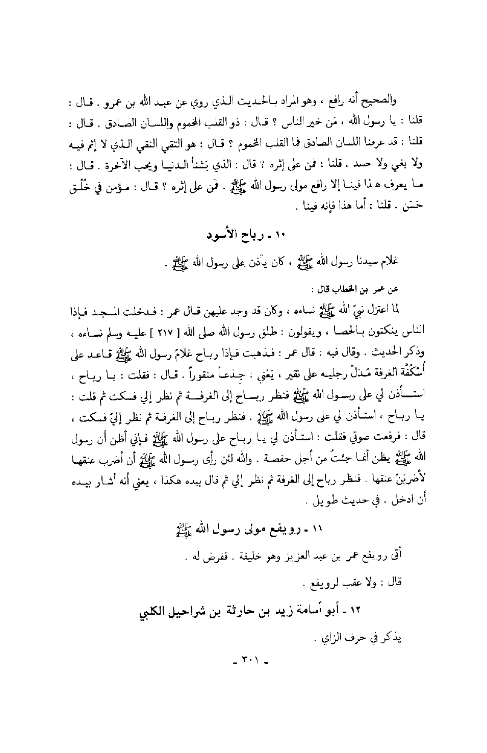 وكان رافع غلاماً لسعيد بن العاص فورثه ولده، فأعتق بعضهم في الإسلام وتمسك بعضٌ، فجاء رافع إلى النبي صَلَّى اللهُ عَلَيْهِ وَسَلَّمَ يستعين به على من لم يعتق حتى يعتقه. فكلمه يومئذ فيه فوهبه له فأعتقه رسول الله صَلَّى اللهُ عَلَيْهِ وَسَلَّمَ. فكان يقول: أنا مولى رسول الله صَلَّى اللهُ عَلَيْهِ وَسَلَّمَ. وهو رافع أبو البهي. قال أبو بكر بن أبي خثيمة قال: وأبو رافع ابنه البهي بن أبي رافع، وكان يقال للبهي: رافع. وكان أبو رافع لأبي أحيحة سعيد بن العاص الأكبر، فورثه بنوه. وأعتق ثلاثة منهم أنصباءهم، وقتلوا يوم بدر جميعاً. وشهد أبو رافع معهم بدراً، ثم اشترى أبو رافع أنصباء بقية بني سعيد إلا نصيب خالد بن سعيد فوهب خالد نصيبه لرسول الله صَلَّى اللهُ عَلَيْهِ وَسَلَّمَ فأعتقه رسول الله صَلَّى اللهُ عَلَيْهِ وَسَلَّمَ. فكان أبو رافع يقول: أنا مولى رسول الله صَلَّى اللهُ عَلَيْهِ وَسَلَّمَ. ويقوله ابنه البهي رافع بن أبي رافع من بعده. فلما ولي عمرو بن العاص سعيد المدينة دعا البهي فقال له: من مولاك؟ قال: رسول الله صَلَّى اللهُ عَلَيْهِ وَسَلَّمَ فضربه مئة سوط ثم سأله، قال: مولاي رسول الله صَلَّى اللهُ عَلَيْهِ وَسَلَّمَ فضربه مئة سوط، حتى ضربه خمس مئة سوط ثم قال: أنا مولاكم. فلما قتل عبد الملك عمرو بن سعيد قال رافع بن أبي رافع: الطويل