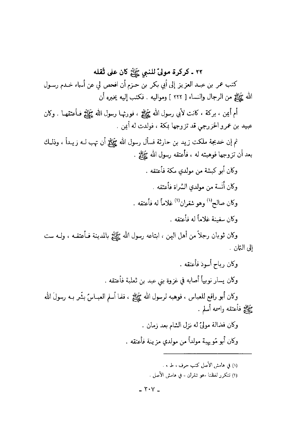كتب عمر بن عبد العزيز إلى أبي بكر بن محمد بن عمرو بن حزم أن افحص لي عن - يعني - أسماء خدم رسول الله صَلَّى اللهُ عَلَيْهِ وَسَلَّمَ من الرجال والنساء ومواليه، فكتب إليه فقال: وكان فضالة مولى له ثمان، نزل الشام بعد، وكان أبو مويهبة مولداً من مولدي مزينة، فأعتقه. قال الحافظ: ولم أجد ذكر فضالة هذا في موالي النبي صَلَّى اللهُ عَلَيْهِ وَسَلَّمَ إلا من هذا الوجه.
