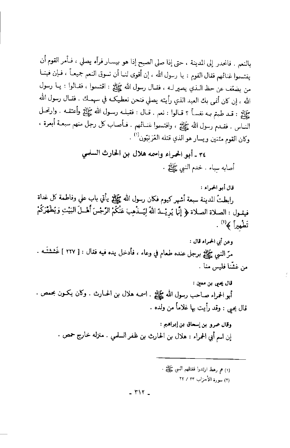 أصابه سباء. خدم النبي صَلَّى اللهُ عَلَيْهِ وَسَلَّمَ. قال أبو الحمراء. رابطت المدينة سبعة أشهر كيوم فكان رسول الله صَلَّى اللهُ عَلَيْهِ وَسَلَّمَ يأتي باب علي وفاطمة كلّ غداة فيقول: الصلاة الصلاة " إنما يريد الله ليذهب عنكم الرجس أهل البيت ويطهركم تطهيراً ". وعن أبي الحمراء قال: مرّ النبي صَلَّى اللهُ عَلَيْهِ وَسَلَّمَ على رجل عنده طعام في وعاء، فأدخل يده فيه فقال: غششته. من غشّنا فليس منّا. قال يحيى بن معين: أبو الحمراء صاحب رسول الله صَلَّى اللهُ عَلَيْهِ وَسَلَّمَ. اسمه هلال بن الحارث. وكان يكون بحمص قال يحيى: وقد رأيت بها غلاماً من ولده. وقال عمرو بن إسحاق بن إبراهيم: إن اسم أبي الحمراء: هلال بن الحارث بن ظفر السلمي. منزله خارج حمص.